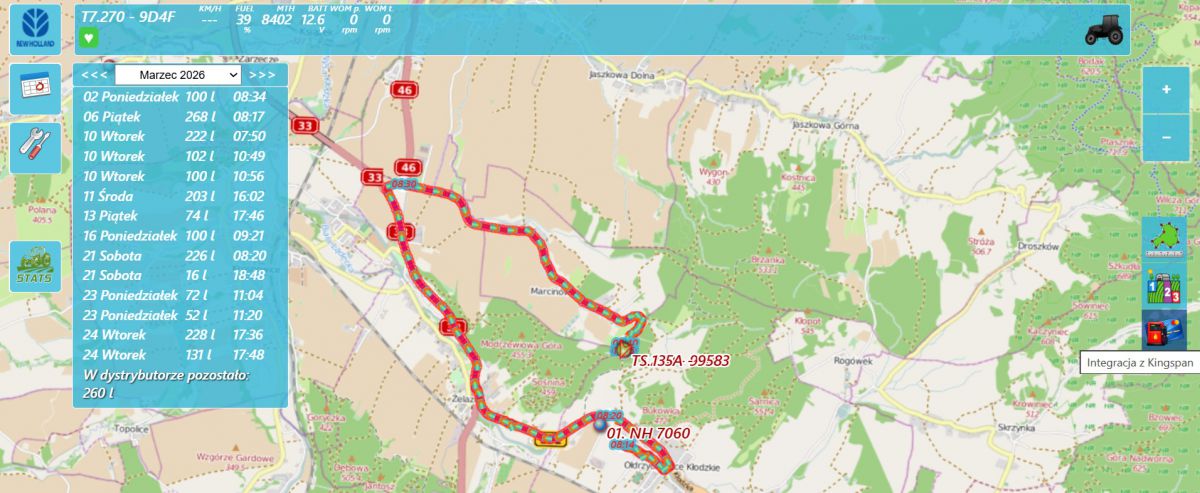 Po wykonaniu pracy maszyna wyjechała na „Drogę” o 15:37 i po 11 minutach, przejechaniu 2,6km i spaleniu 1,37litra paliwa wjechała ponownie w obszar „Baza Ołdrz.”.