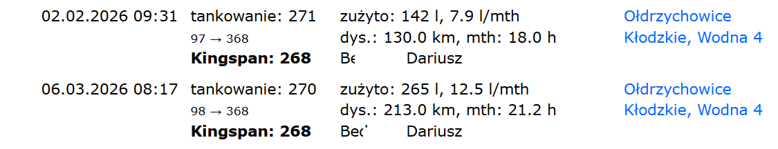 - 🛢️ Poziom paliwa pozostałego w zbiorniku po ostatnim tankowaniu